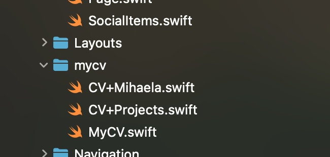 My professional experience is organized in a separate file (CV+Projects.swift